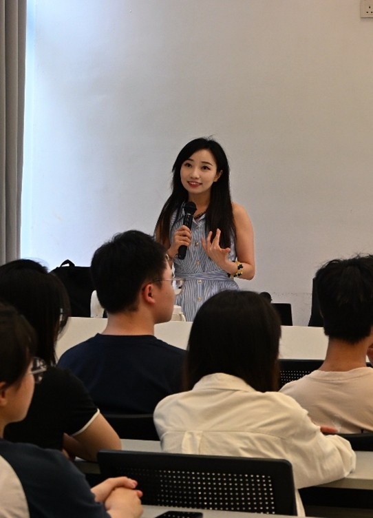 交流期間,澳門大學法學院高級導師梁靜姮以「澳門夫妻財產制度之前世今生」為題,深入淺出地闡釋了澳門民法,尤其是家庭法制度的歷史演變與現實特色。隨後,澳大法學院博士生左曉宇、碩士生齊嘉分別就碩博申請流程及在澳學習生活體驗進行分享,為來訪學生提供了寶貴的升學與求學建議。