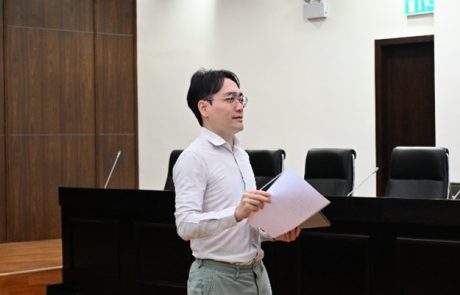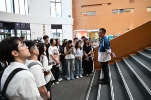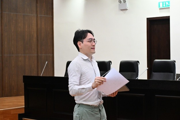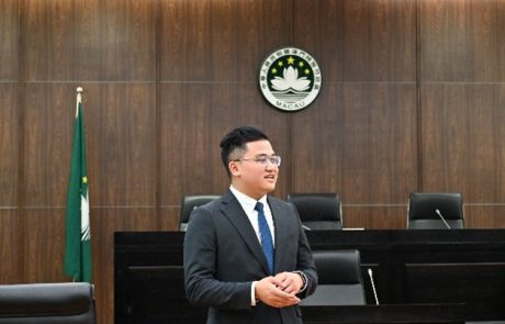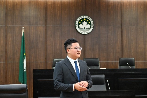 在實地參訪環節,師生一行走進澳大法學院模擬法庭及圖書館。翁文挺助理教授、林華傑律師現場講解了澳門法院的層級架構與審判機制,並圍繞兩地庭審程序差異、跨境法律執業等實務議題,與同學們展開熱烈互動。
