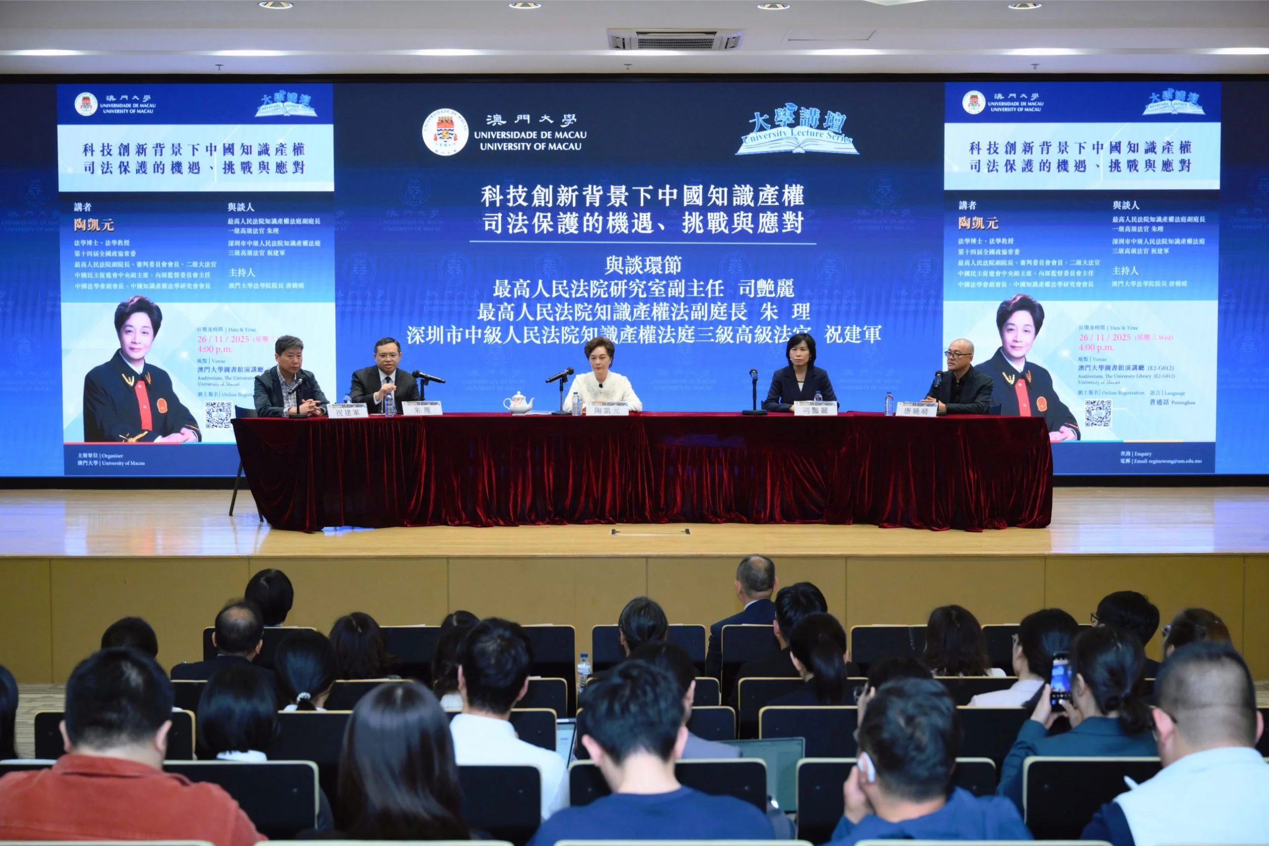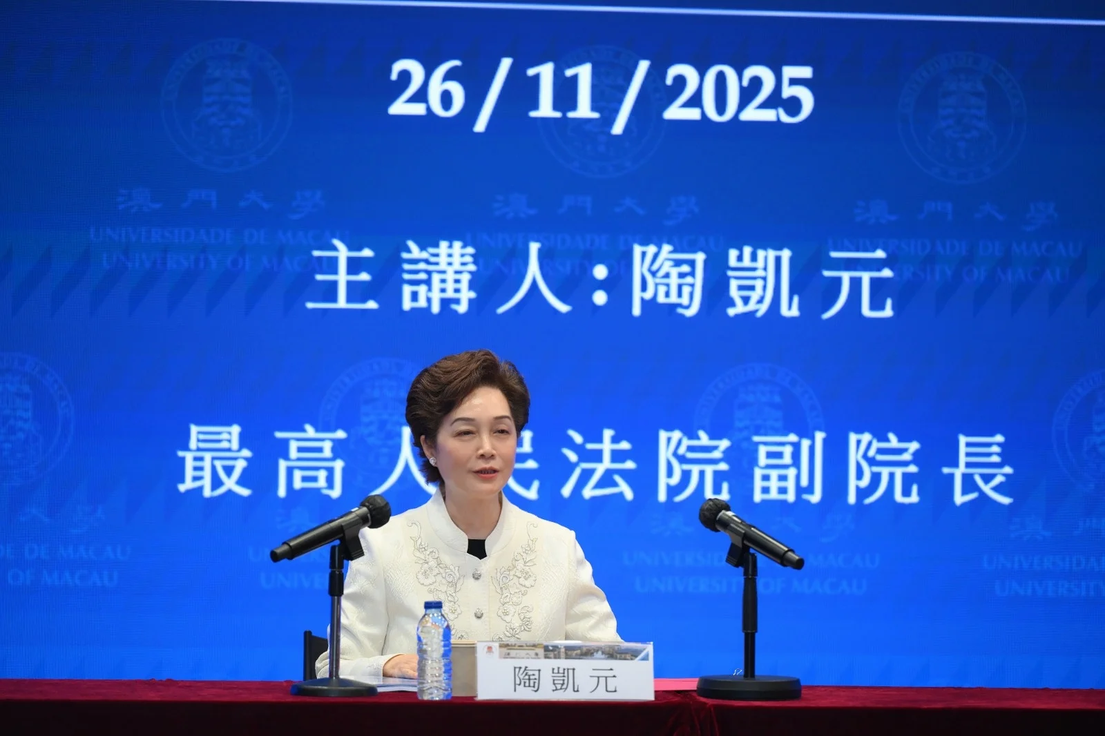 澳門大學於11月26日舉行“大學講壇”,由最高人民法院副院長、二級大法官陶凱元以“科技創新背景下中國知識產權司法保護的機遇、挑戰與應對”為題發表演說,深入探討中國知識產權司法保護的新形勢、新任務及司法應對,吸引澳門社會各界參與。
