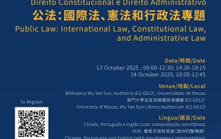 澳門大學和科英布拉大學聯合研討會——公法:國際法、憲法和行政法專題 Gallery 澳門大學和科英布拉大學聯合研討會——公法:國際法、憲法和行政法專題 Seminar, 活動 澳門大學和科英布拉大學聯合研討會——公法:國際法、憲法和行政法專題 10 月 03 | 週五 議程 ...