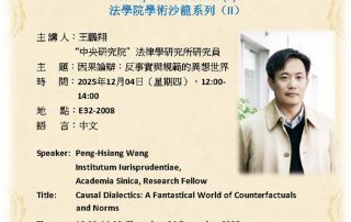 法學院學術沙龍系列 (II): 因果論辯: 反事實與規範的異想世界 Gallery 法學院學術沙龍系列 (II): 因果論辯: 反事實與規範的異想世界 Seminar, 活動 法學院學術沙龍系列 (II): 因果論辯: 反事實與規範的異想世界 12 月 02 | 週二 ...