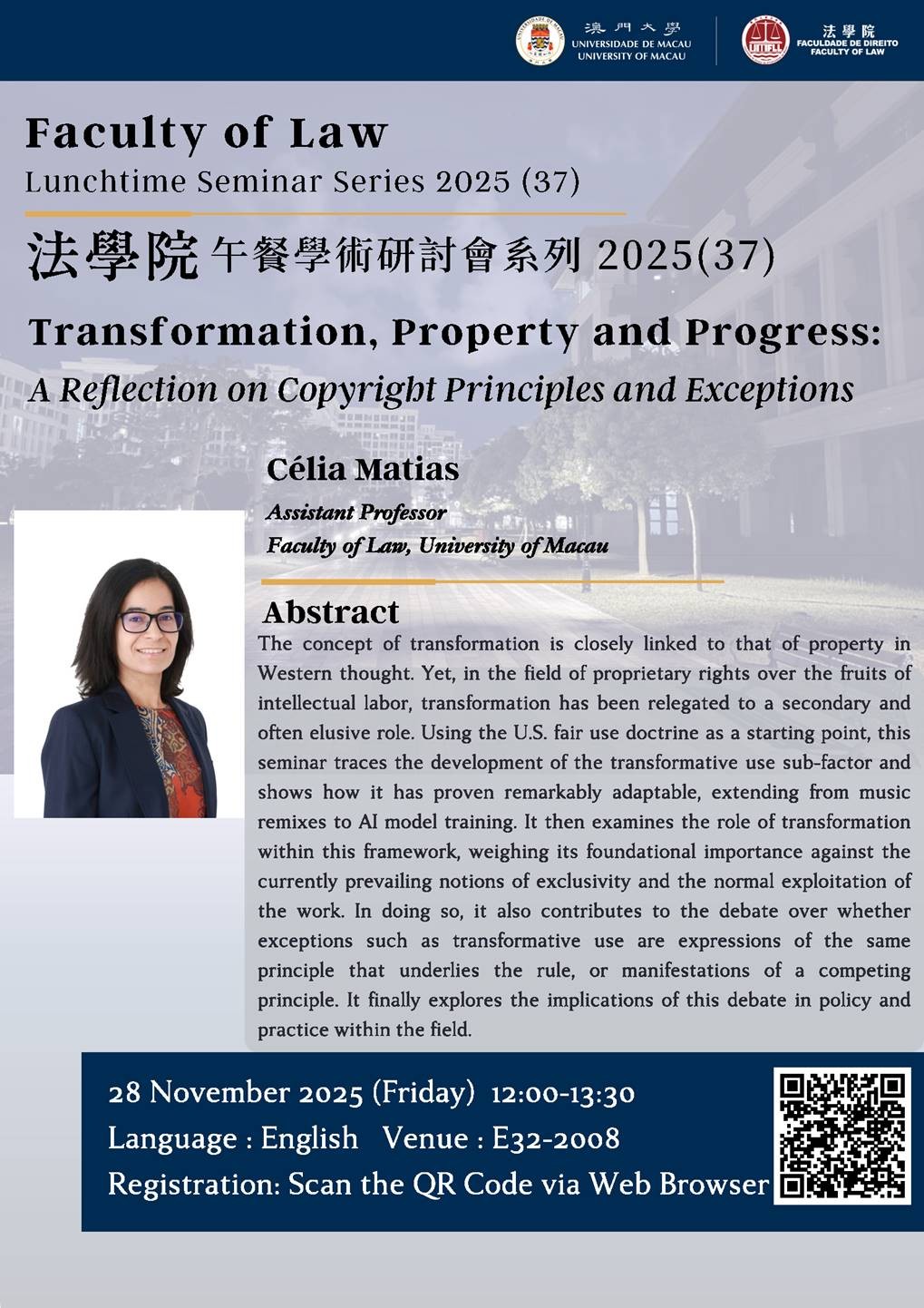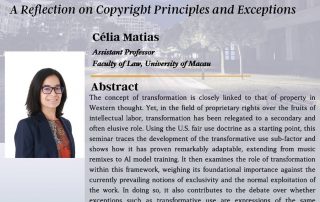 [FLL] Lunchtime Seminar Series (37) : Transformation, Property and Progress: A reflection on Copyright Principles and Exceptions Gallery [FLL] Lunchtime Seminar Series (37) : Transformation, Property and Progress: A reflection on Copyright Principles and Exceptions Seminar, Events [FLL] Lunchtime Seminar Series (37) : Transformation, Property and Progress: A reflection on Copyright Principles and Exceptions Nov 27 | Thu ...