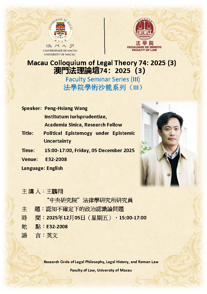 Faculty Seminar Series (III): Political Epistemogy under Epistemic Uncertainty Gallery Faculty Seminar Series (III): Political Epistemogy under Epistemic Uncertainty Seminar, Events Faculty Seminar Series (III): Political Epistemogy under Epistemic Uncertainty Dec 02 | Tue ...