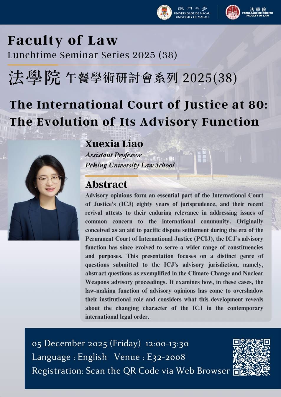 [FLL] Lunchtime Seminar Series (38) : The International Court of Justice at 80: The Evolution of Its Advisory Function Gallery [FLL] Lunchtime Seminar Series (38) : The International Court of Justice at 80: The Evolution of Its Advisory Function Seminar, Events [FLL] Lunchtime Seminar Series (38) : The International Court of Justice at 80: The Evolution of Its Advisory Function Dec 02 | Tue ...