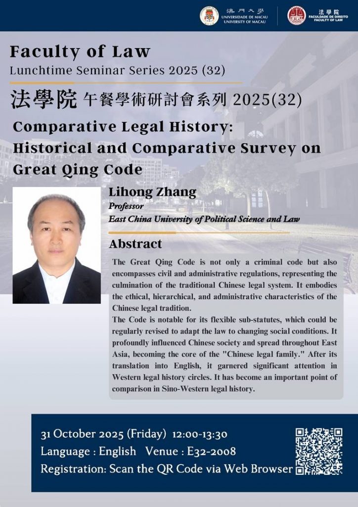 [FLL] Lunchtime Seminar Series (32) :Comparative Legal History: Historical and Comparative Survey on Great Qing Code